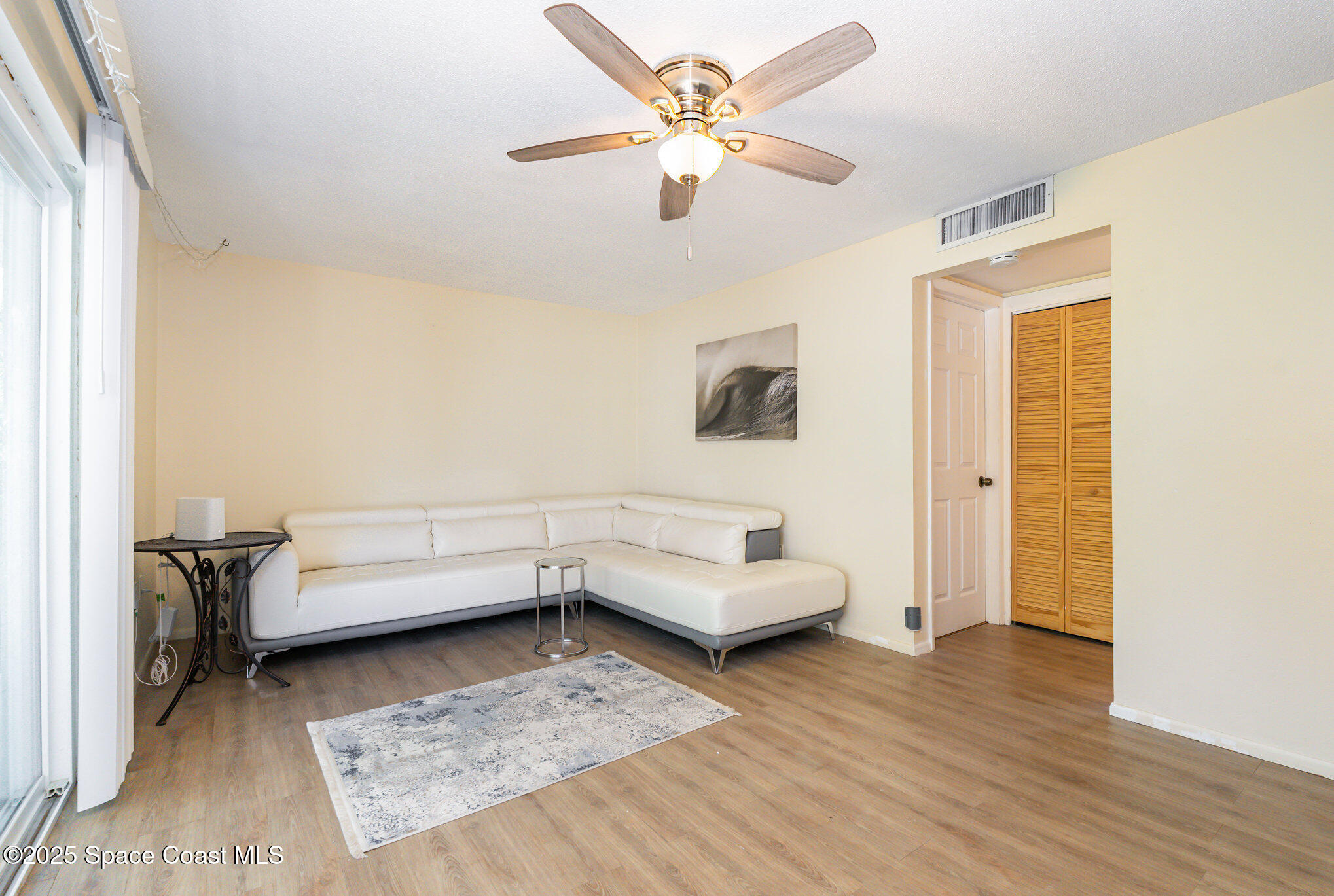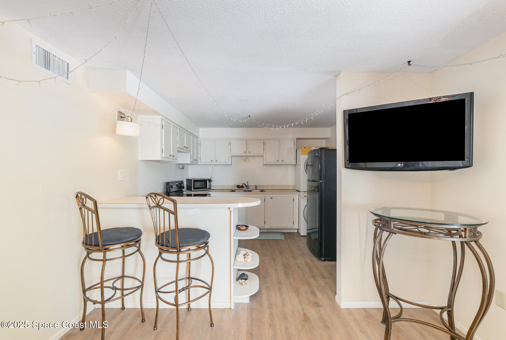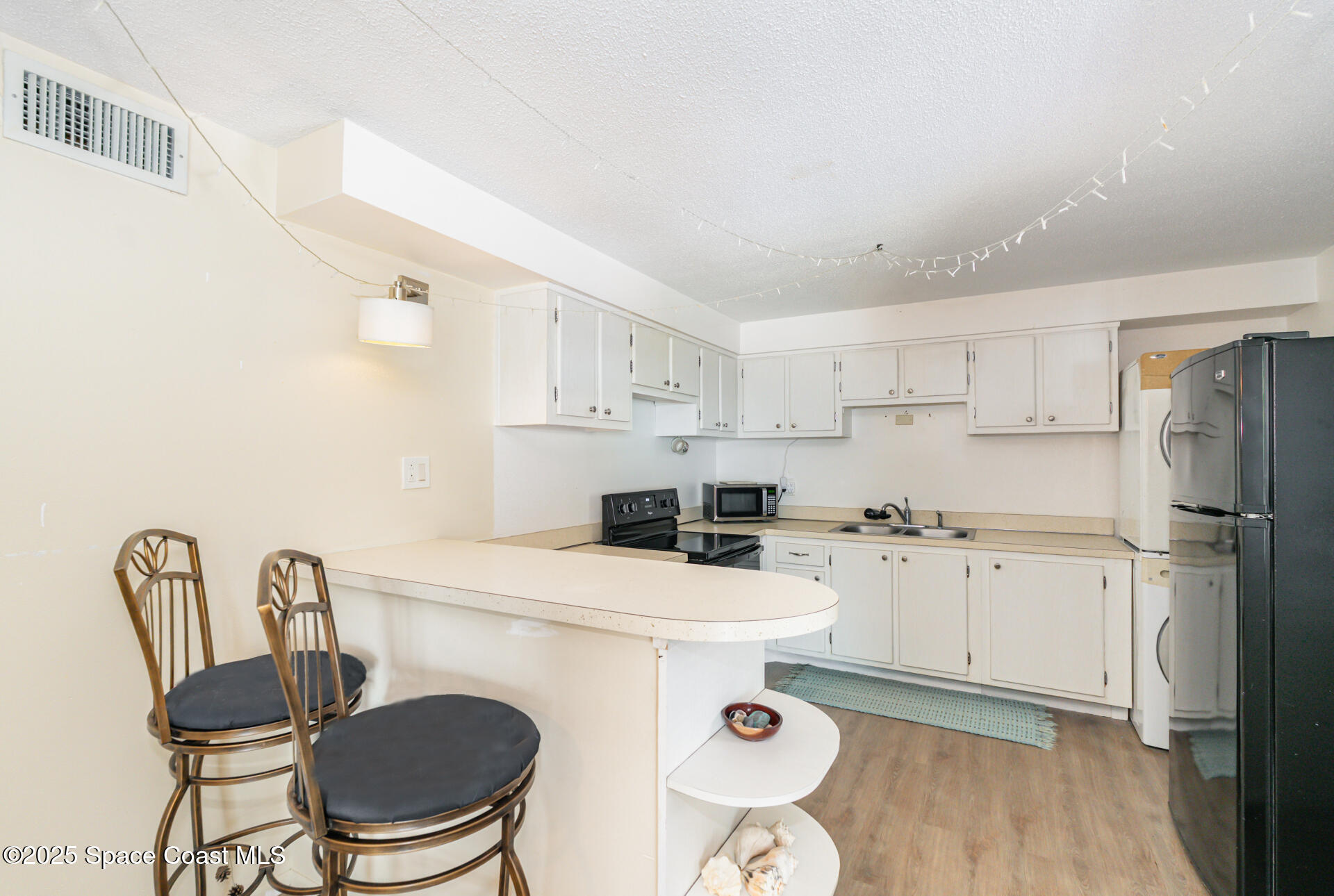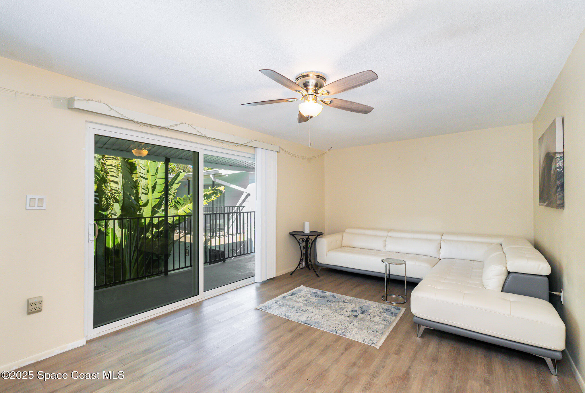 Well-maintained 2-bedroom, 1-bath second-floor condo just two blocks from the beach and vibrant downtown. This solid all-block construction unit offers newer vinyl plank flooring, impact windows, and sliding glass door. Open kitchen/living area with plenty of natural light. Enjoy a convenient outdoor common area with BBQ space, perfect for relaxing or entertaining. Walking distance to local restaurants and shopping. Conveniently located near the Public Library, Aquatic Center, local theater, Port Canaveral and the Kennedy Space Center. Less than an hour to Orlando International Airport. 1 month minimum rentals. Washer & Dryer in unit too! HVAC 2020. Water Heater 2021.