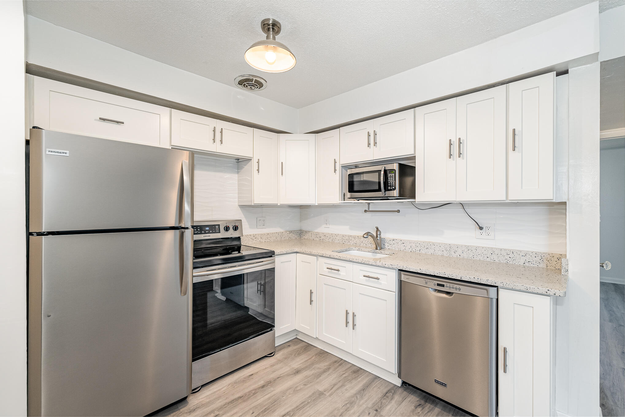 Appliances | Dishwasher, Electric Range, Microwave, Refrigerator, Washer/Dryer Stacked |