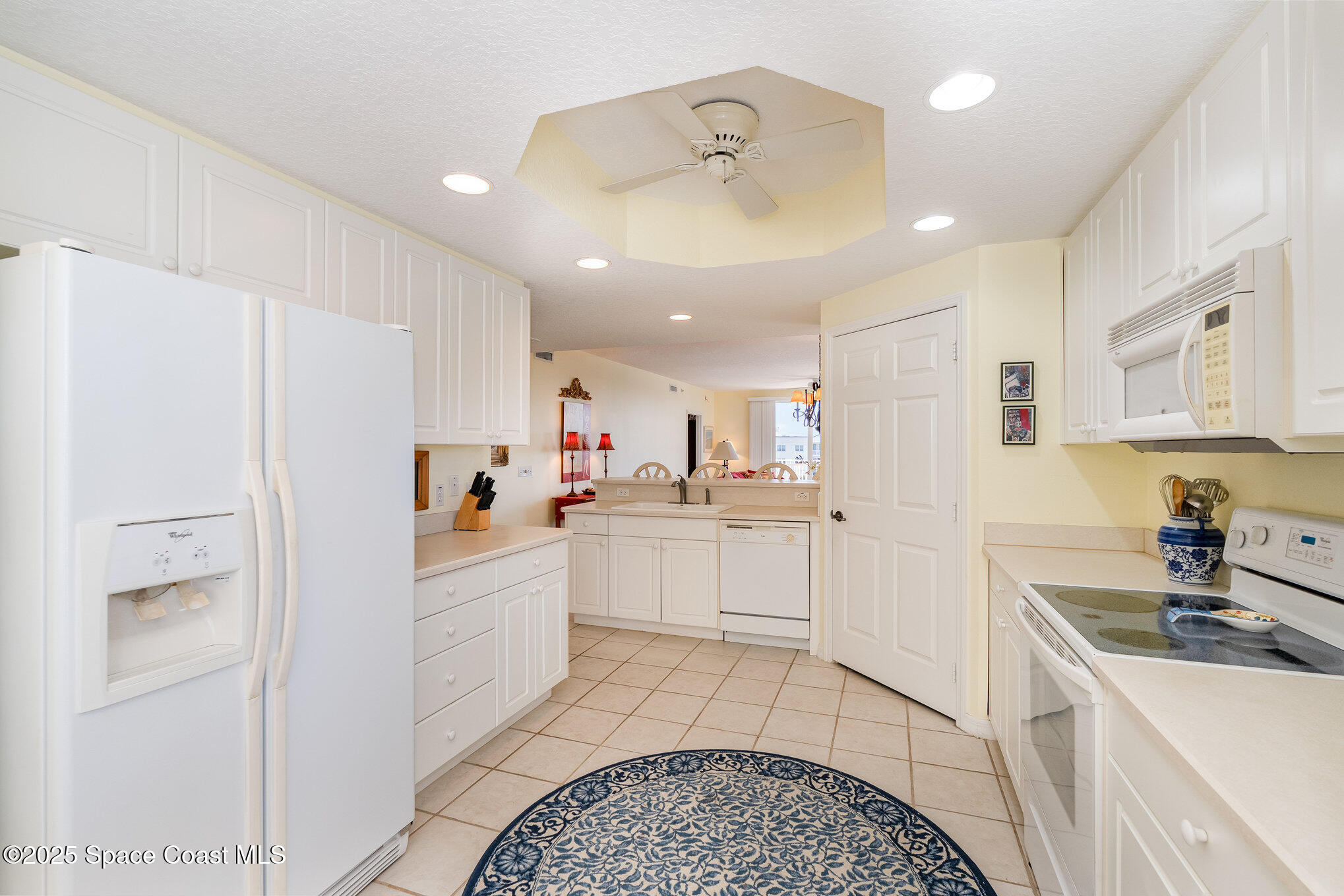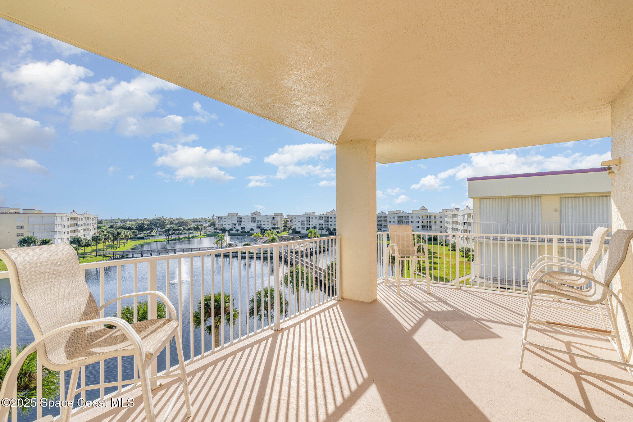 Experience resort-style living adjacent by the sea in this 5th-floor, lakefront corner unit offering abundant natural light and stunning wraparound balcony views. This spacious 3 bedroom, 2 bath condo features an open floor plan with a breakfast bar, two dining areas, and a mix of tile and carpet flooring. Fully furnished and move-in ready. Private garage too! The gated community of Solana Lakes is renowned for exceptional maintenance, strong financials, and top-tier amenities including a fitness center, pool, tennis courts, and clubhouse. This unit is in one of the two closest buildings in the community to the ocean, and is ideally located near Port Canaveral and the Kennedy Space Center ~ perfect for enjoying rocket launches, cruising, and waterfront dining!